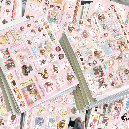 Korean Cute Cartoon Rabbit and Bear Stickers ins Korean-style Guka Journal diy Decorative creative stickers and decals